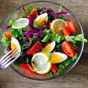 2. 柠檬汁:柠檬汁的酸味可以中和蔬菜的苦味,增加沙拉的清爽口感。